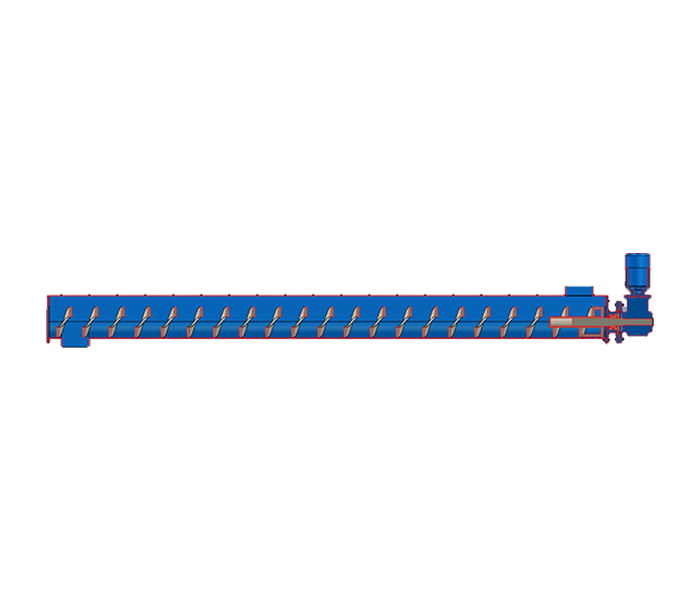 無(wú)軸螺旋輸送機(jī)的螺旋葉片采用不銹鋼材料通過(guò)專用模具的澆鑄而成,因而具有足夠的強(qiáng)度和剛度并且葉片表面光潔、又具有合適的旋轉(zhuǎn)速度,有效保證在輸送柵渣的過(guò)程中不會(huì)發(fā)生污物纏繞、阻塞現(xiàn)象,同時(shí)在輸送量較大的情況下螺旋葉片也不會(huì)變形。U型螺旋輸送槽內(nèi)耐磨襯里設(shè)置成半圓狀,其圓弧設(shè)置成與無(wú)軸螺旋體半徑相吻合以減少過(guò)量間隙來(lái)提高輸送效果;耐磨襯里采用耐磨性能高的尼龍材料制作,便于安裝及更換,使用壽命長(zhǎng)。U型螺旋槽采用不銹鋼板卷制而成,除進(jìn)料口敞開(kāi)外,其余部份沿螺旋槽加平蓋封閉,整個(gè)傳輸過(guò)程在一個(gè)密封的槽中進(jìn)行,降低噪聲,減少了異味的排出;在U型槽的底部設(shè)有排放口,并配套排水球閥。